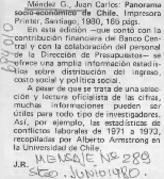 Autores chilenos - Méndez G., Juan Carlos - Panorama socio-económico de Chile