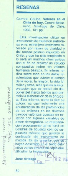 Valores en el Chile de hoy - Galilea W., Carmen - Autoras chilenas