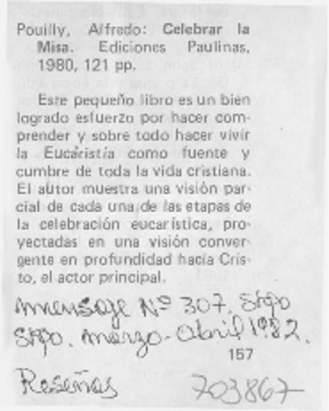 Celebrar la misa - Pouilly, Alfredo - Autores chilenos