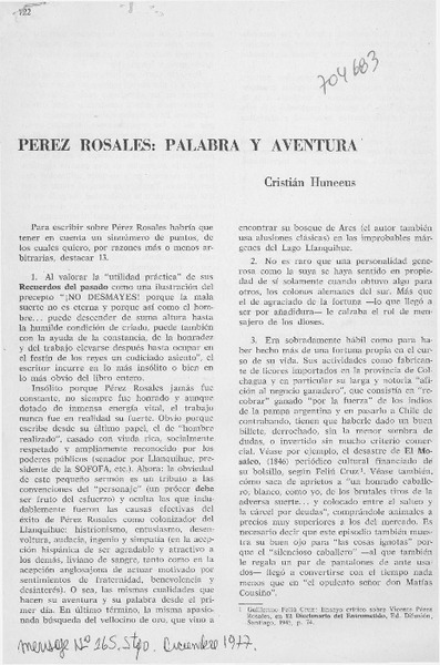 Pérez Rosales: Palabra y aventura [artículo] Cristián Huneeus.