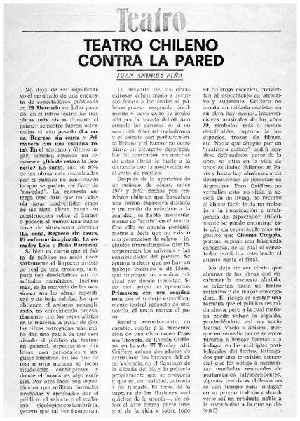 Teatro chileno contra la pared [artículo] Juan Andrés Piña.