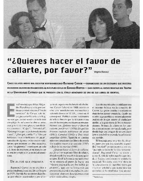 Quieres hacer el favor de callarte, por favor?" [artículo] Virginia Rioseco.