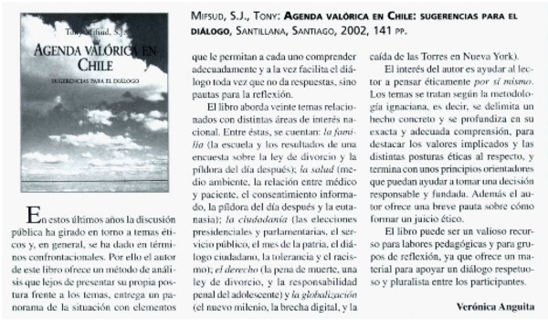 Autores - Mifsud, Tony - Agenda valórica en Chile: sugerencias para el diálogo