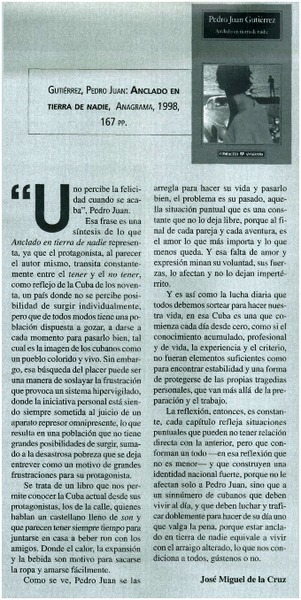 Anclado en tierra de nadie [artículo] José Miguel de la Cruz.