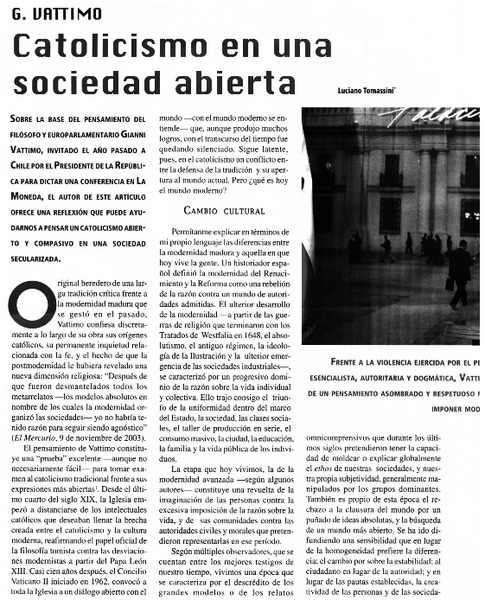Catolicismo en una sociedad abierta [artículo] Luciano Tomassini.