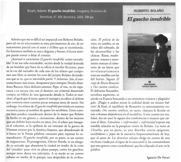 "Su excelencia el embajador" y "Parejas de trapo" [artículo] Juan Andrés Piña.