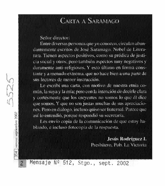 Carta a Saramago [artículo] Jesús Rodríguez I.