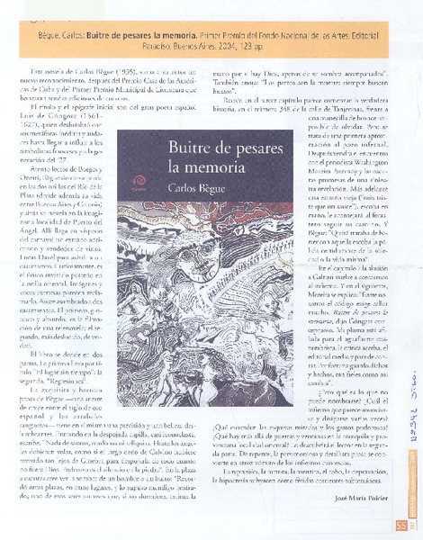 Buitre de pesares la memoria Carlos Bègue [artículo] / José María Poirier.