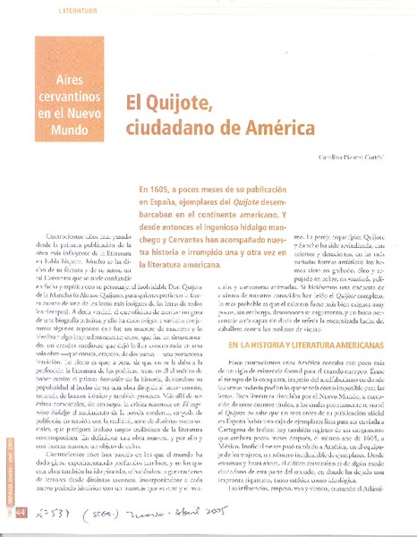 Aires cervantinos en el Nuevo Mundo : El Quijote, ciudadano de América [artículo] Carolina Pizarro Cortés.