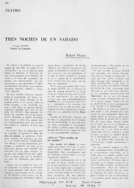 Autores chilenos - Tres noches y un sábado - Cornejo, Carlos