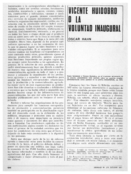 Vicente Huidobro o la voluntad inaugural [artículo] Oscar Hahn.