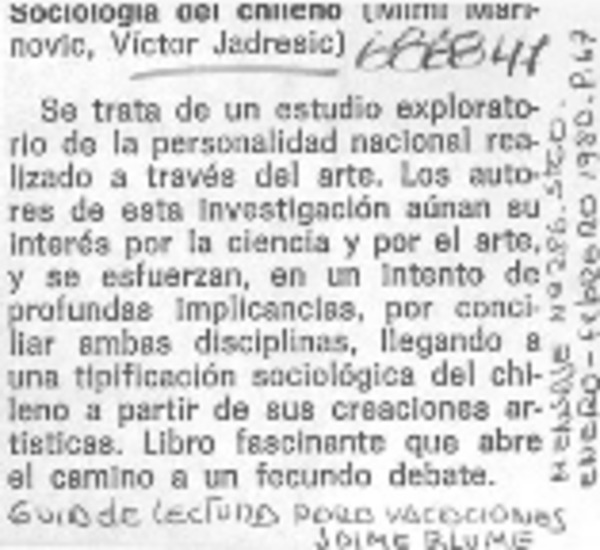 Autores chilenos - Jadresic, Víctor - Sicología del chileno - Marinovic, Mimí