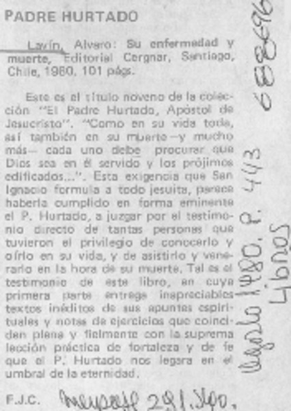 Autores chilenos - Lavín, Alvaro - Padre Hurtado