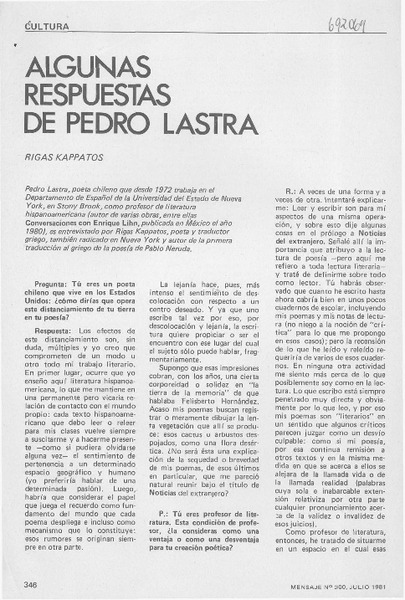 Algunas respuestas de Pedro Lastra : [entrevista] [artículo] Rigas Kappatos.