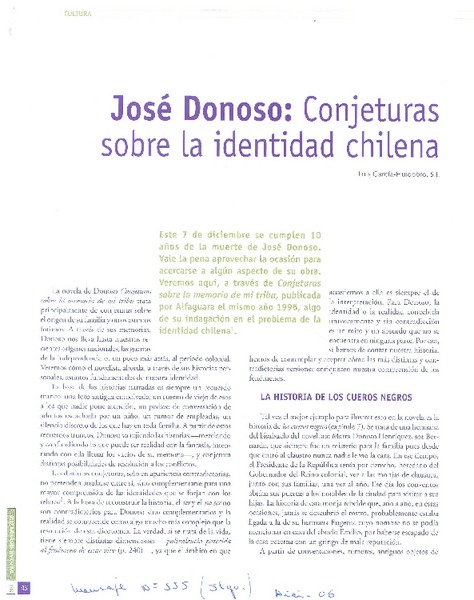 Donoso Ph., S.J., José "...una sabiduría divina, misteriosa, escondida" [artículo]María Luisa Pérez W.