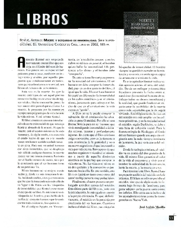 Muerte y búsquedas de inmortalidad [artículo] José Andrés Murillo.