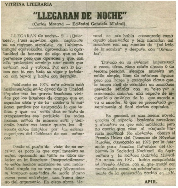 Autores chilenos - Morand, Carlos - Llegaran de noche