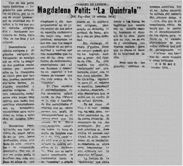 Magdalena Petit: "la Quintrala" [artículo] J.A.M. del C.