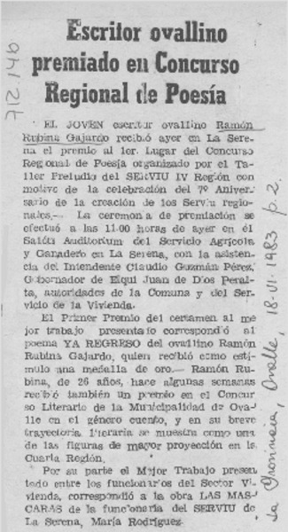 Un Coquimbano fue el ganador de concurso de cuento breve. [artículo]