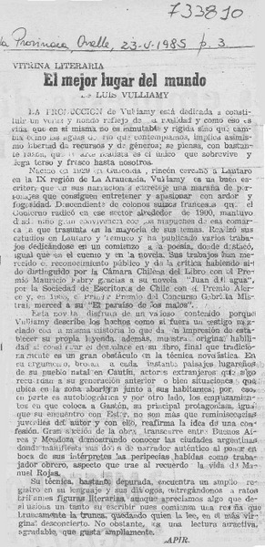Autores chilenos - Vulliamy, Luis - Mejor lugar del mundo
