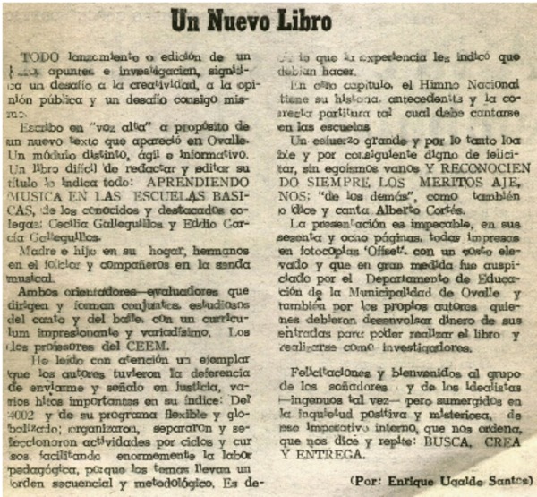 Un Nuevo libro [artículo] Enrique Ugalde Santos.