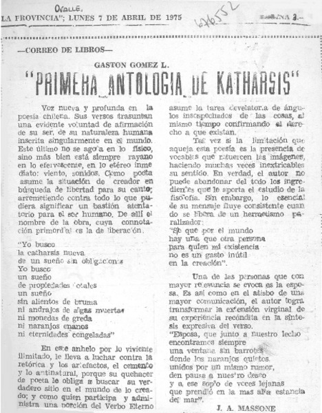 Primera antología de katharsis" [artículo] J. A. Massone.