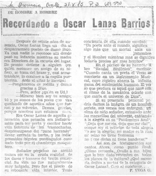 Recordando a Oscar Lanas Barrios [artículo] P. Vega C.