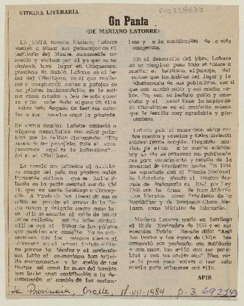 Acevedo Hernández, Antonio - Autores chilenos - Chañarcillo
