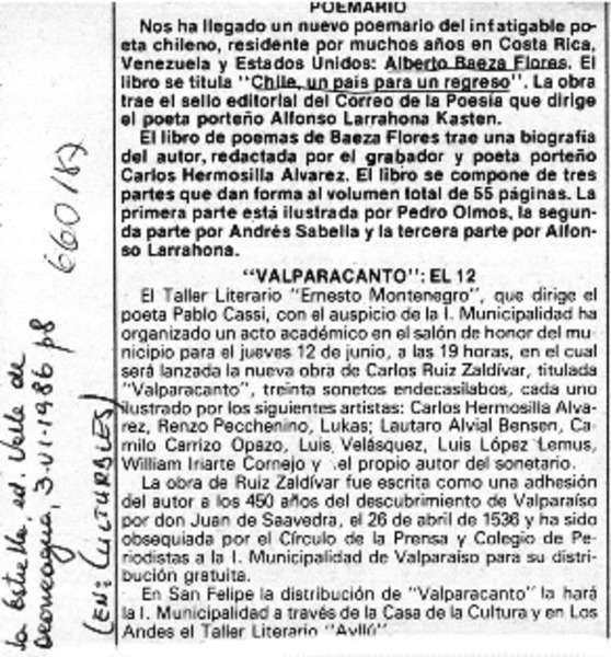Poeta de Putaendo se destaca en las letras de Antofagasta. [artículo]