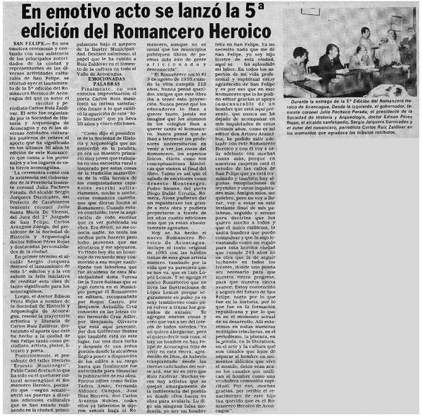 En emotivo acto se lanzó la 5° edición de romancero heroico. [artículo]