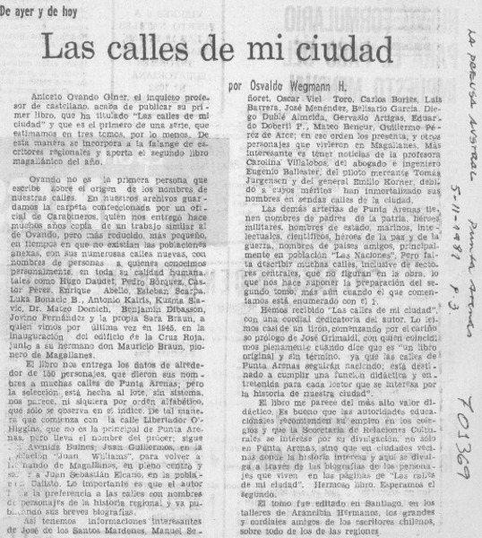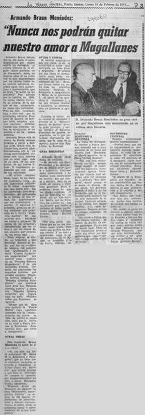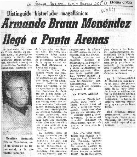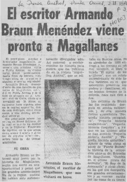 Armando Braun Menéndez llegó a Punta Arenas. [artículo]