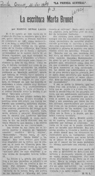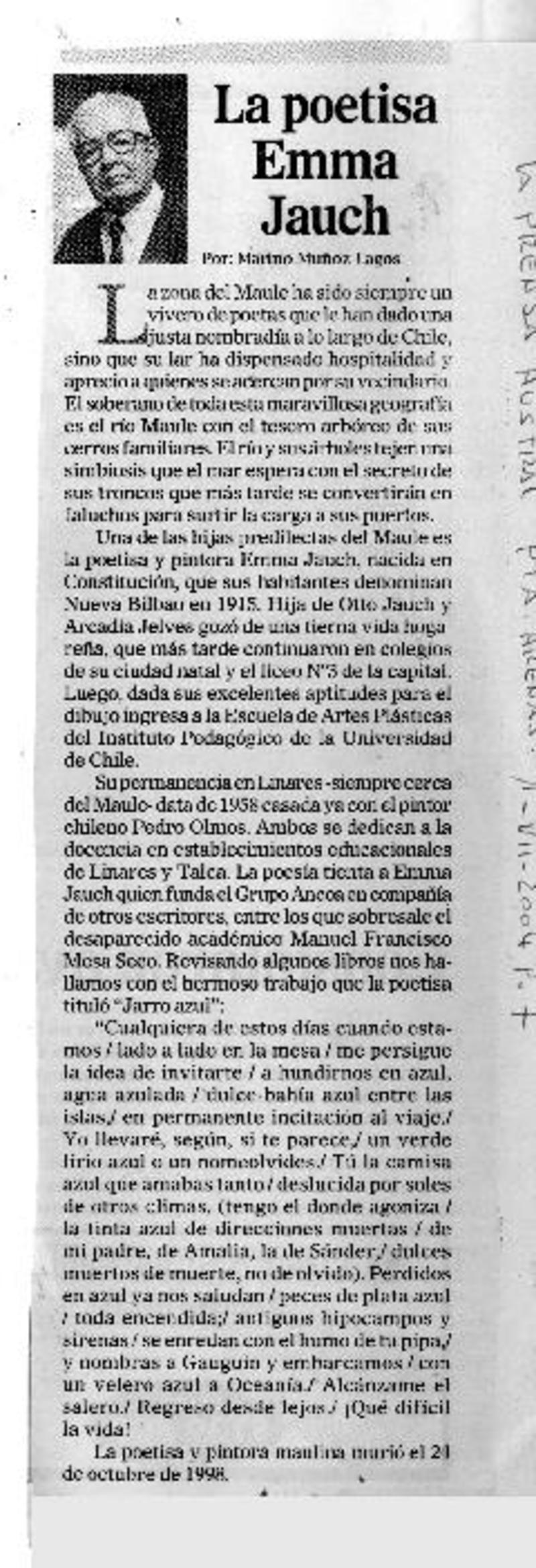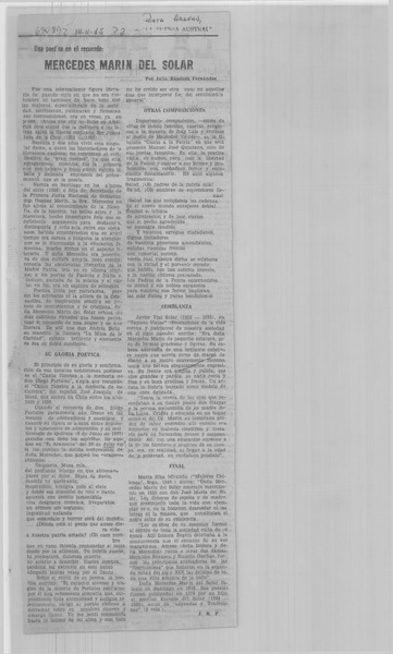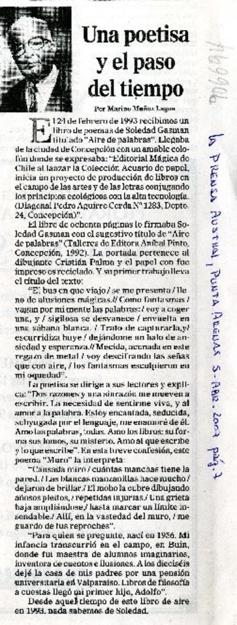 Una poetisa y el paso del tiempo [artículo] Marino Muñoz Lagos.
