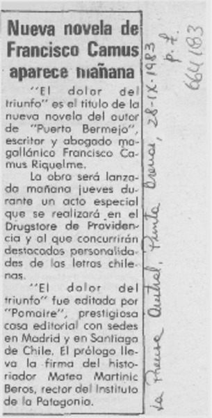 Apareció nuevo libro de Marino Muñoz Lagos. [artículo]
