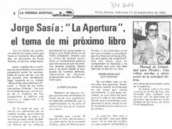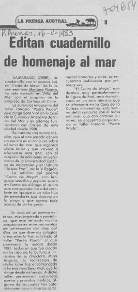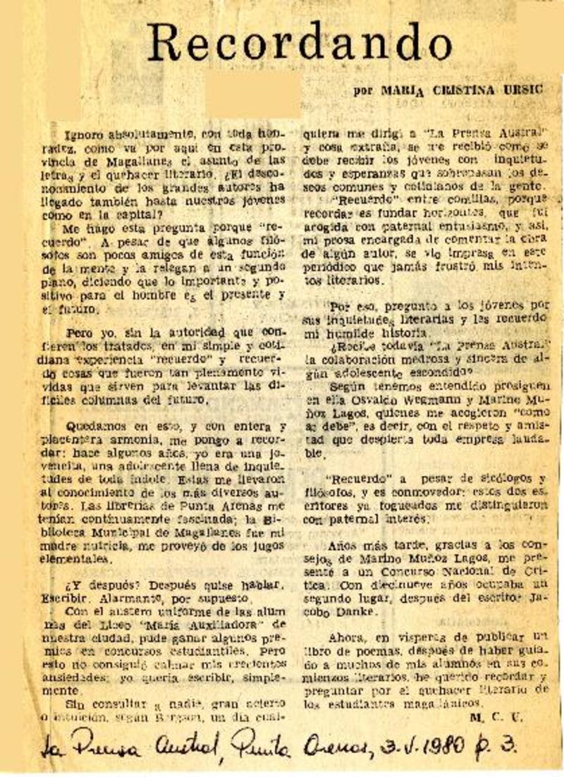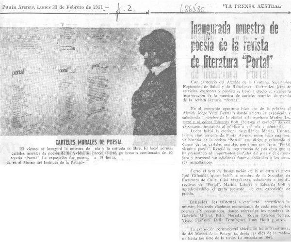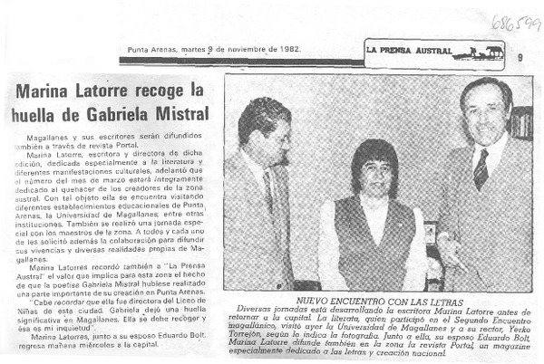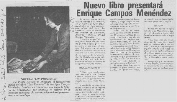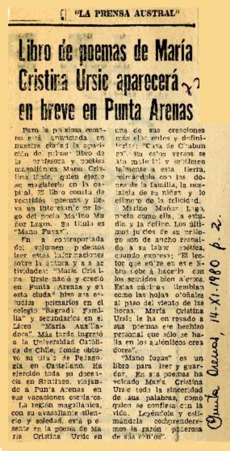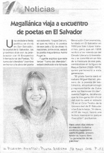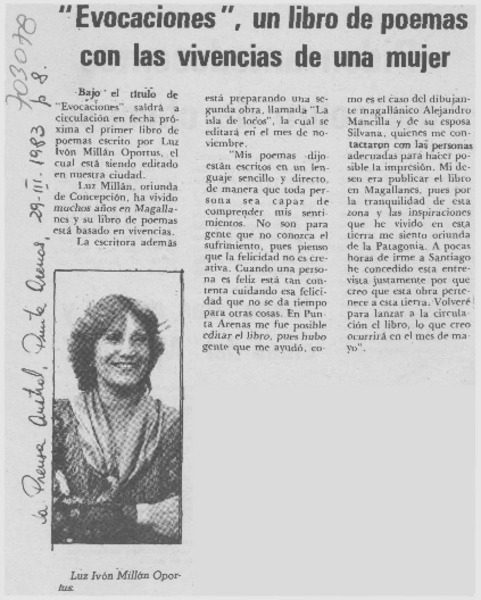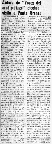 Autora de "Voces del archipiélago" efectúa visita a Punta Arenas. [artículo]