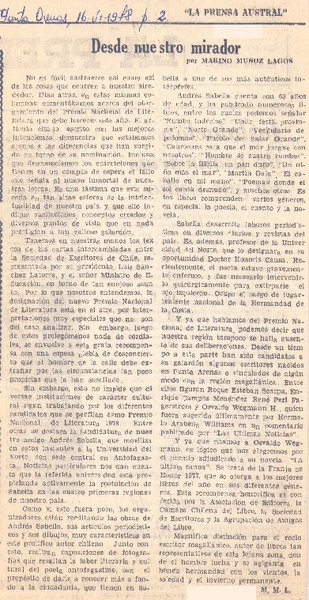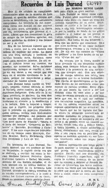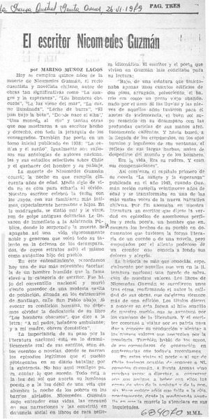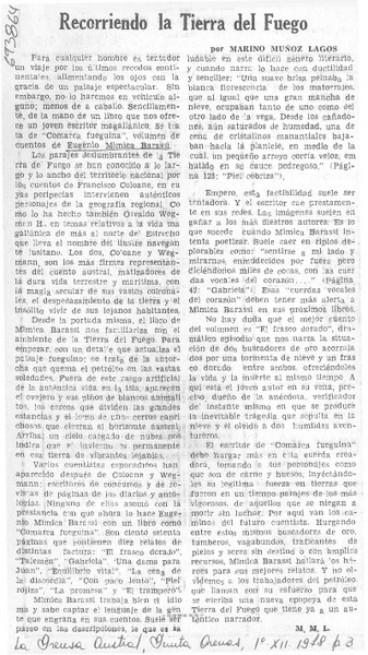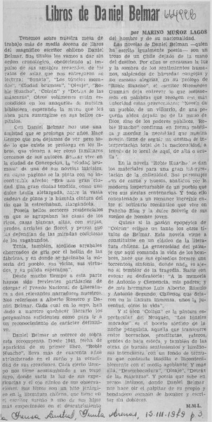 Un notable novelista [artículo] por Marino Muñoz Lagos.