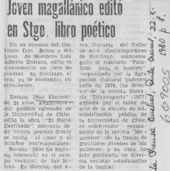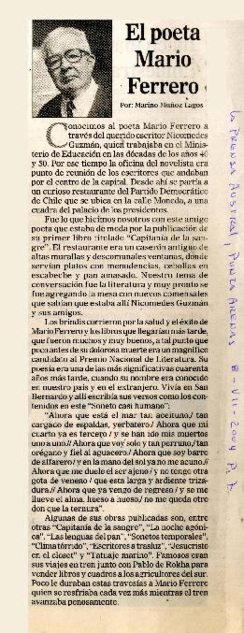 Un poeta casi olvidado [artículo] Marino Muñoz Lagos.