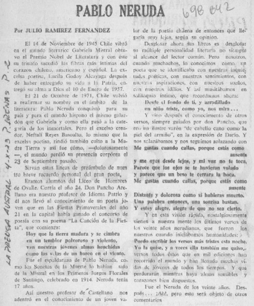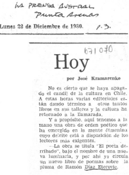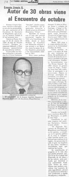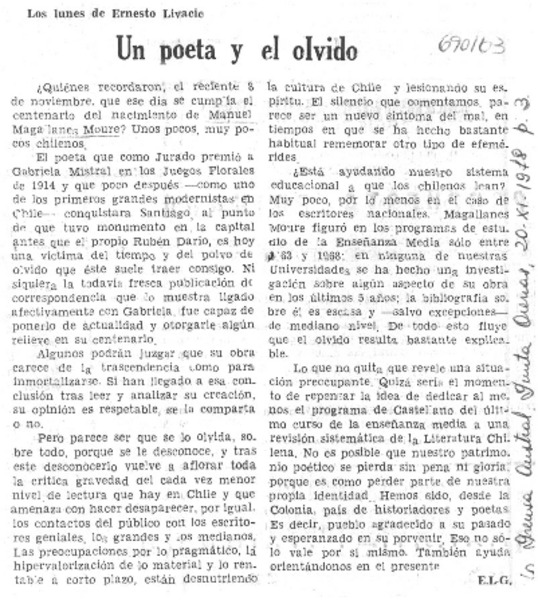 Un poeta y el olvido [artículo] Ernesto Livacic.