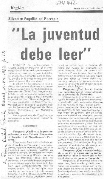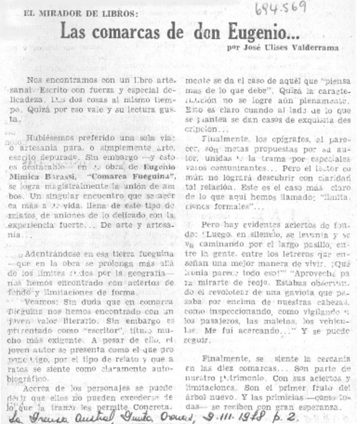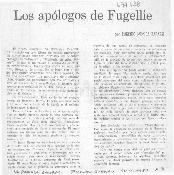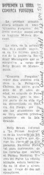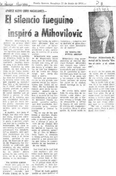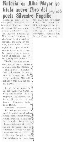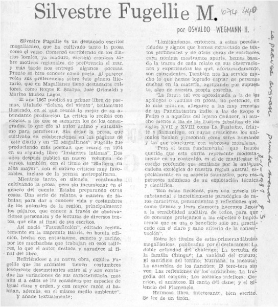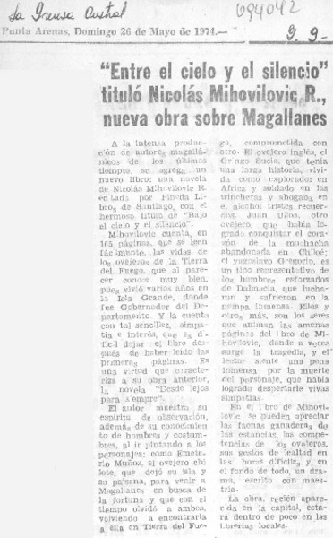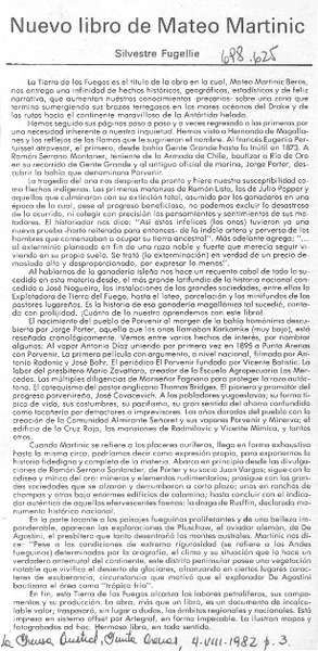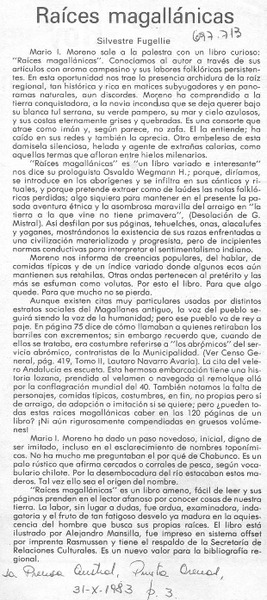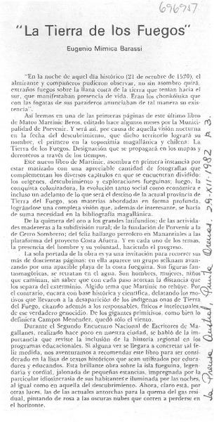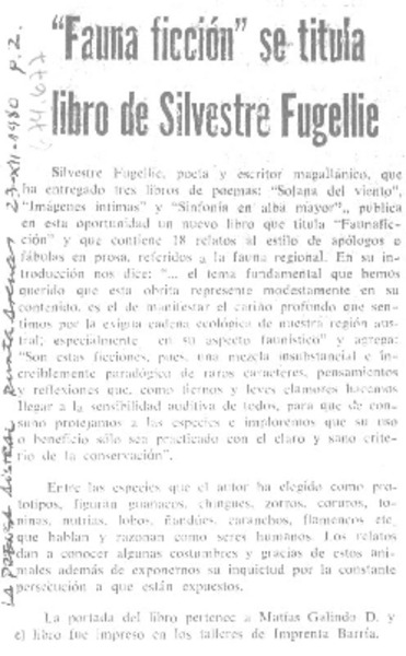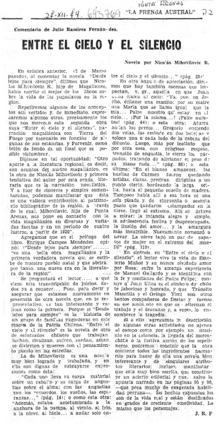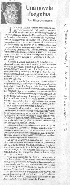Una novela fueguina [artículo]Silvestre Fugellie.