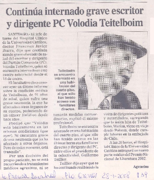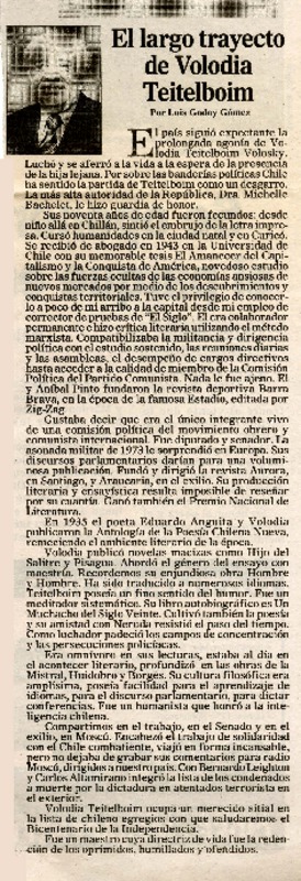 Tras una extensa agonía murió Volodia Teitelboim [artículo].