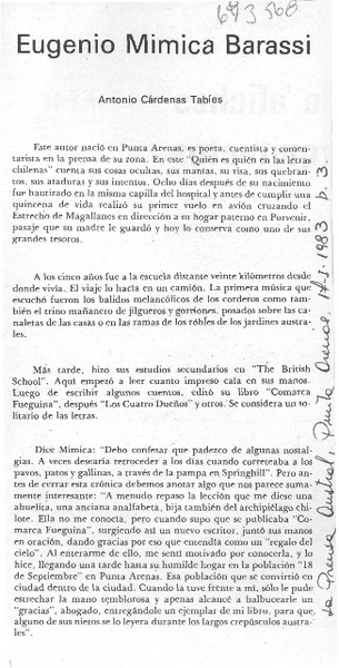 Autores chilenos - Mimica Barassi, Eugenio - Tierra del Fuego, en días de viento ausente