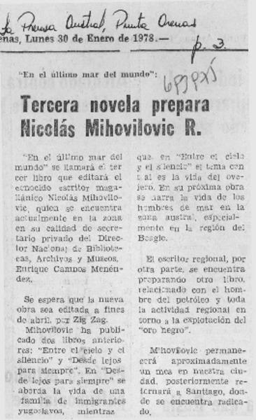 Mihovilovic, Nicolás - Autores chilenos - En el último mar del mundo