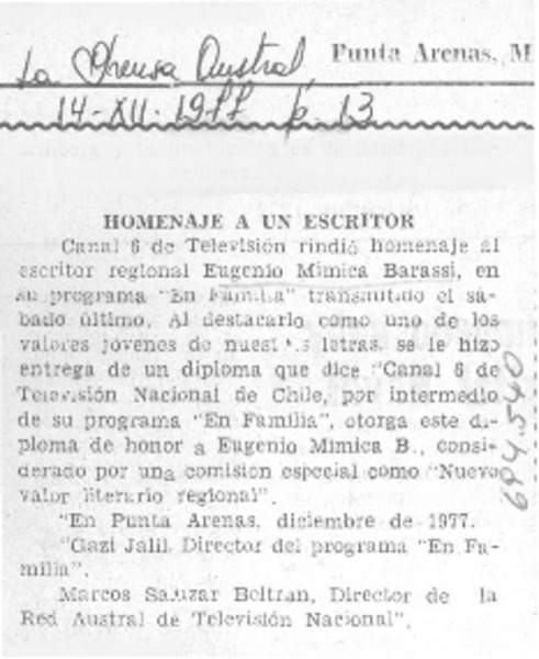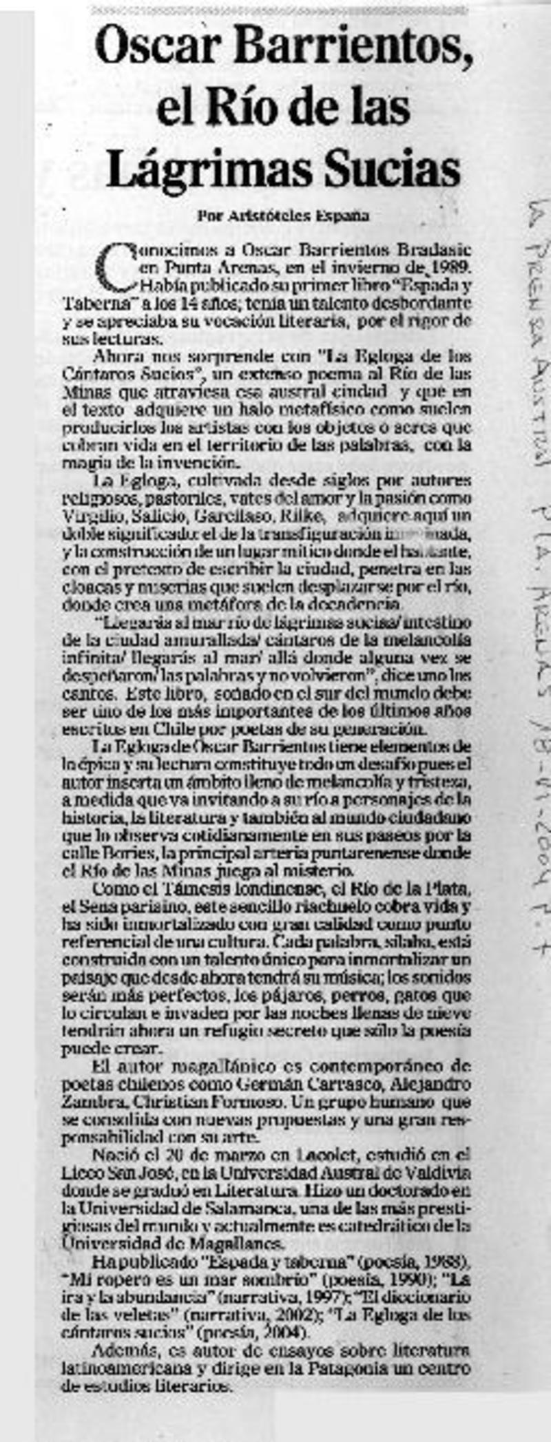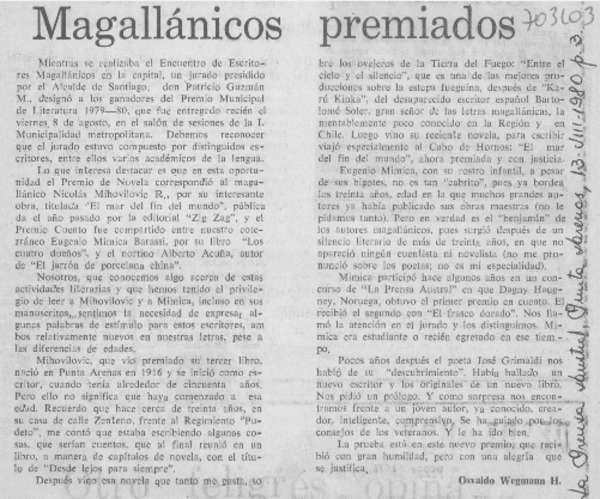 Un cuentista magallánico [artículo] Luis Agoni Molina.