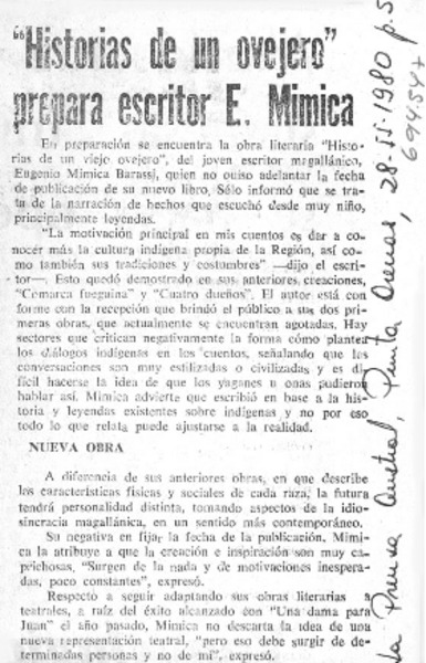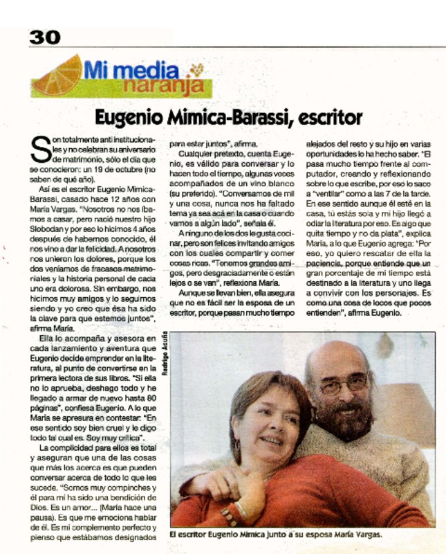 Una historia, una novela [artículo] Eugenio Mimica Barassi.