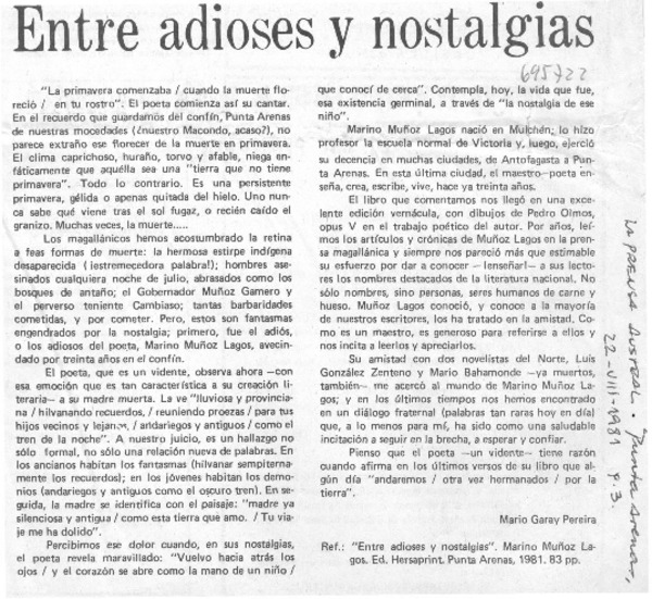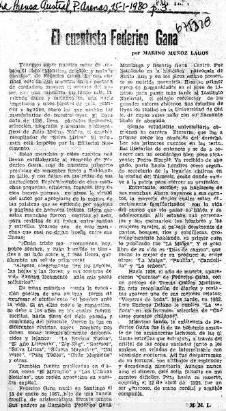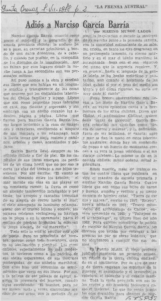 Adiós a Narciso García Barría [artículo] Marino Muñoz Lagos.