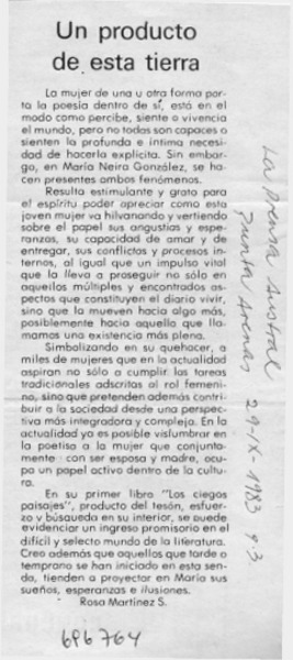 Un producto de esta tierra [artículo] Rosa Martínez S.