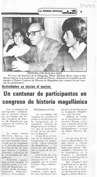 Un Centenar de participantes en congreso de historia magallánica. [artículo]