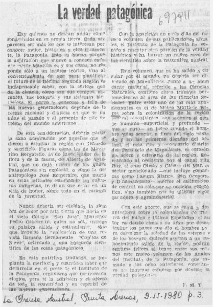 Una auténtica cultura ha creado Magallanes. [artículo]
