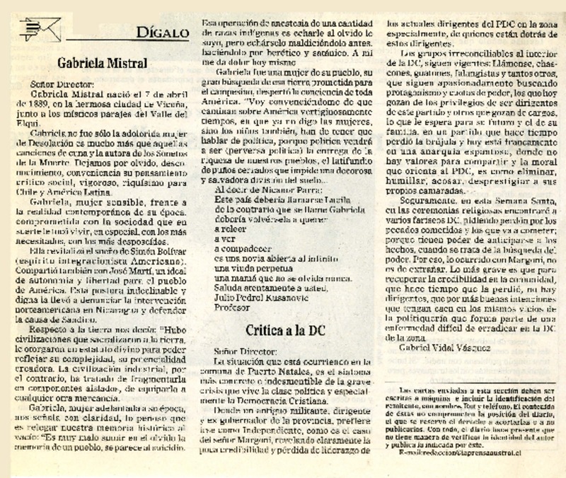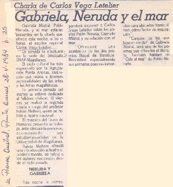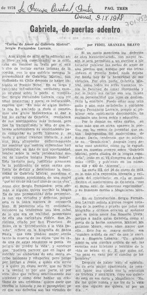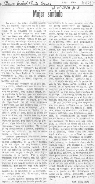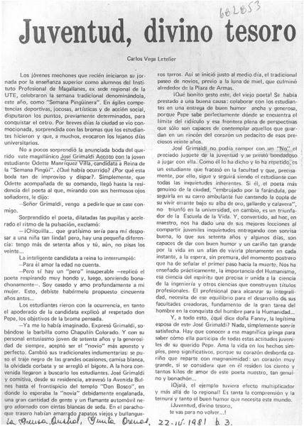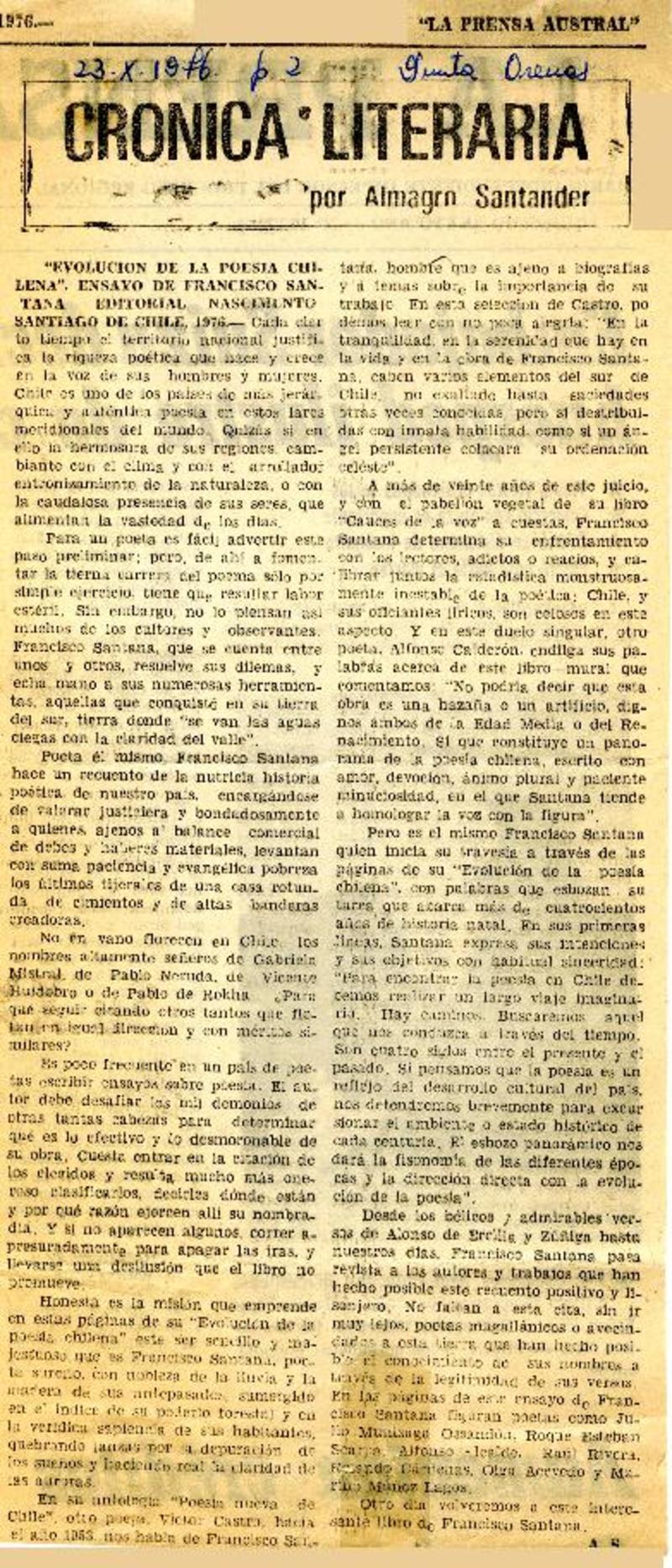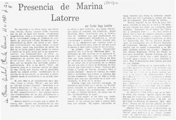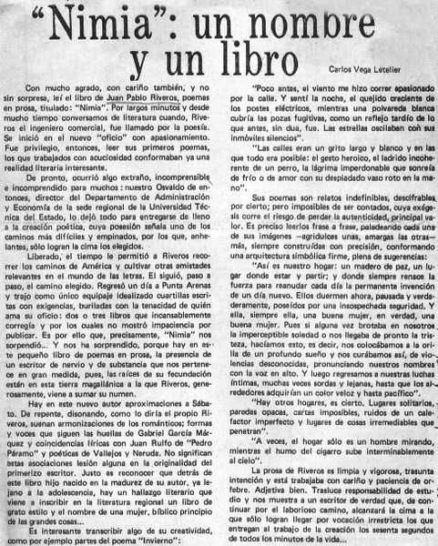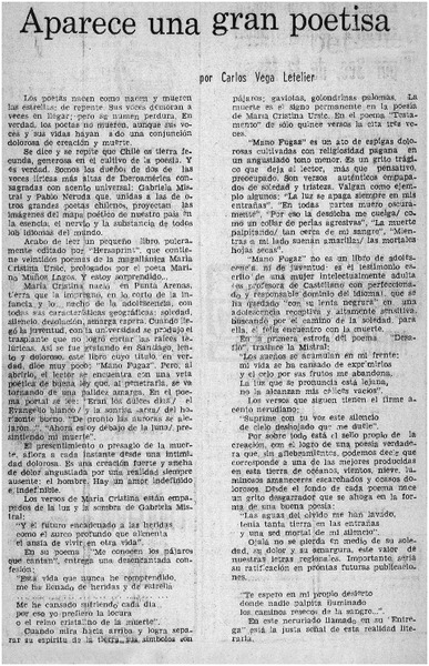 Aparece una gran poetisa [artículo] Carlos Vega Letelier.