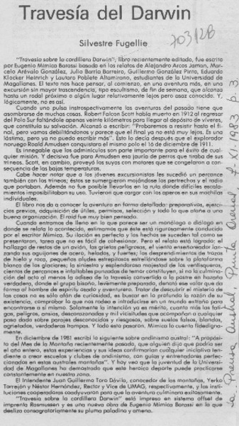 Travesía del Darwin [artículo] Silvestre Fugellie.
