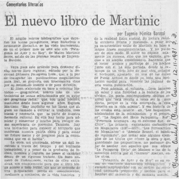 Un magallánico ilustre que prestigió y sirvió a su tierra natal y a Chile [artículo]Mateo Martinic B.